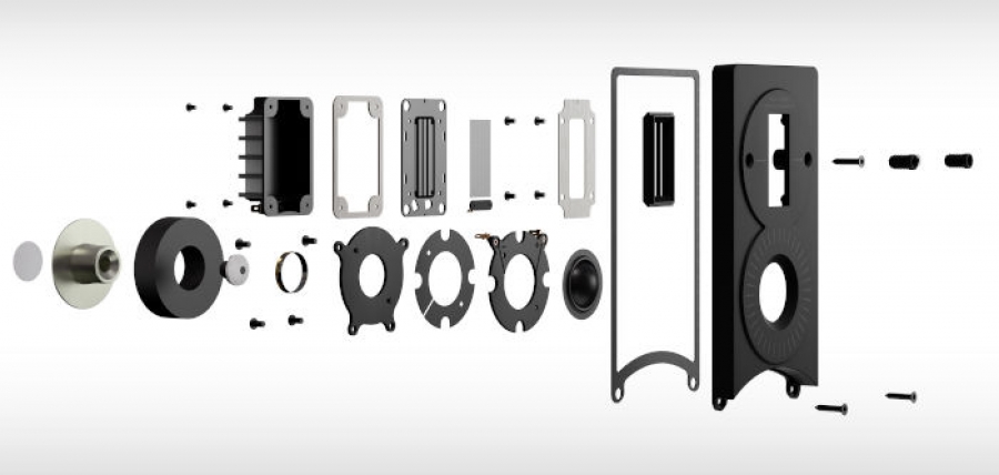 I due altoparlanti sono caratterizzati dai centri di emissione molto vicini. Sono installati sullo stesso pannello di alluminio pressofuso, una soluzione che permette di avere una superficie rigida e leggera allo stesso tempo, naturalmente in grado di bloccare le vibrazioni che arrivano dai woofer, quelle che potrebbero danneggiare il delicato e microscopico movimento dei due altoparlanti.