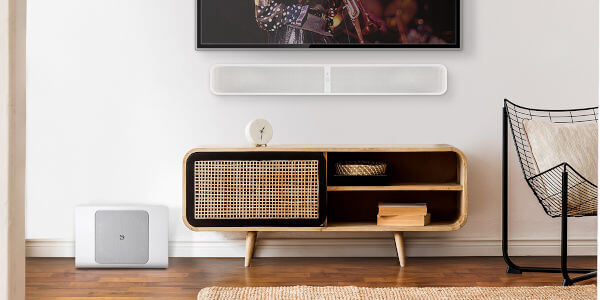 il Pulse sub+ abbinato alla soundbar Pulse Soundbar 2i per formare la perfetta coppia da abbinare al TV
