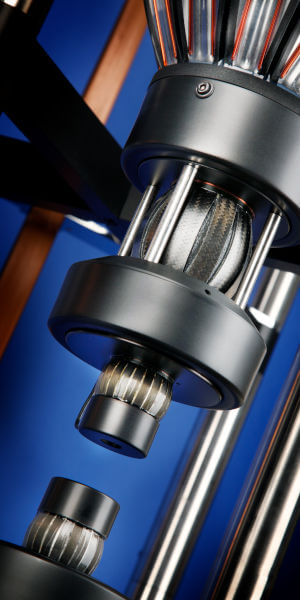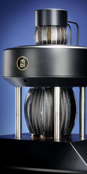 L’altoparlante che utilizza il sistema RadialStrahler ha ancora una bobina e un magnete di tipo tradizionale ma questi sono collocati in orizzontale rispetto alla membrana radiante e anche questa ha una posizione non tradizionale: non è rivolta verso l’ascoltatore ma ha una struttura 3D che è libera nello spazio, dove magnete e bobina sono alla sua base. La membrana radiante è realizzata con delle lamelle (MBL ama definirli “petali”) in fibra di carbonio che vengono riunite e bloccate in alto.