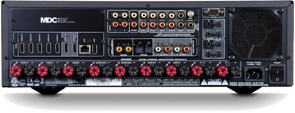 Il T 778 è controllabile, oltre che dai comandi sul pannello frontale e via telecomando, dall’app BluOS Controller disponibile per dispositivi iOS, Android, Kindle Fire e da computer Windows e MacOS. Nel T 778 sono due i moduli MDC presenti sul pannello posteriore: il primo è occupato di default dal modulo VM 310 (quello che conta 5 HDMI in, 2 HDMI out, porta di rete e ingresso USB-B) il secondo è a disposizione per ulteriori espansioni e nuove connessioni.